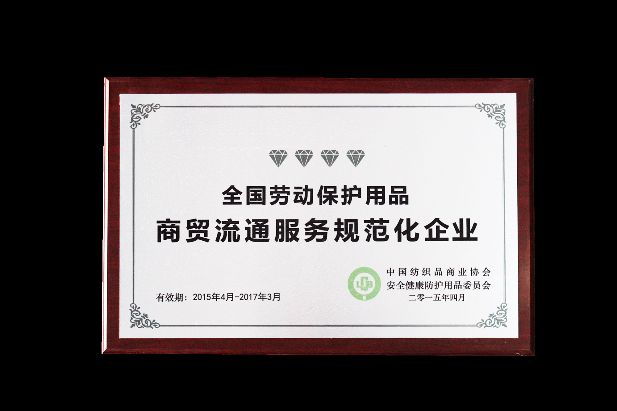 恒安勞保榮獲全國勞動保護用品商貿(mào)流通服務(wù)規(guī)范化企業(yè)