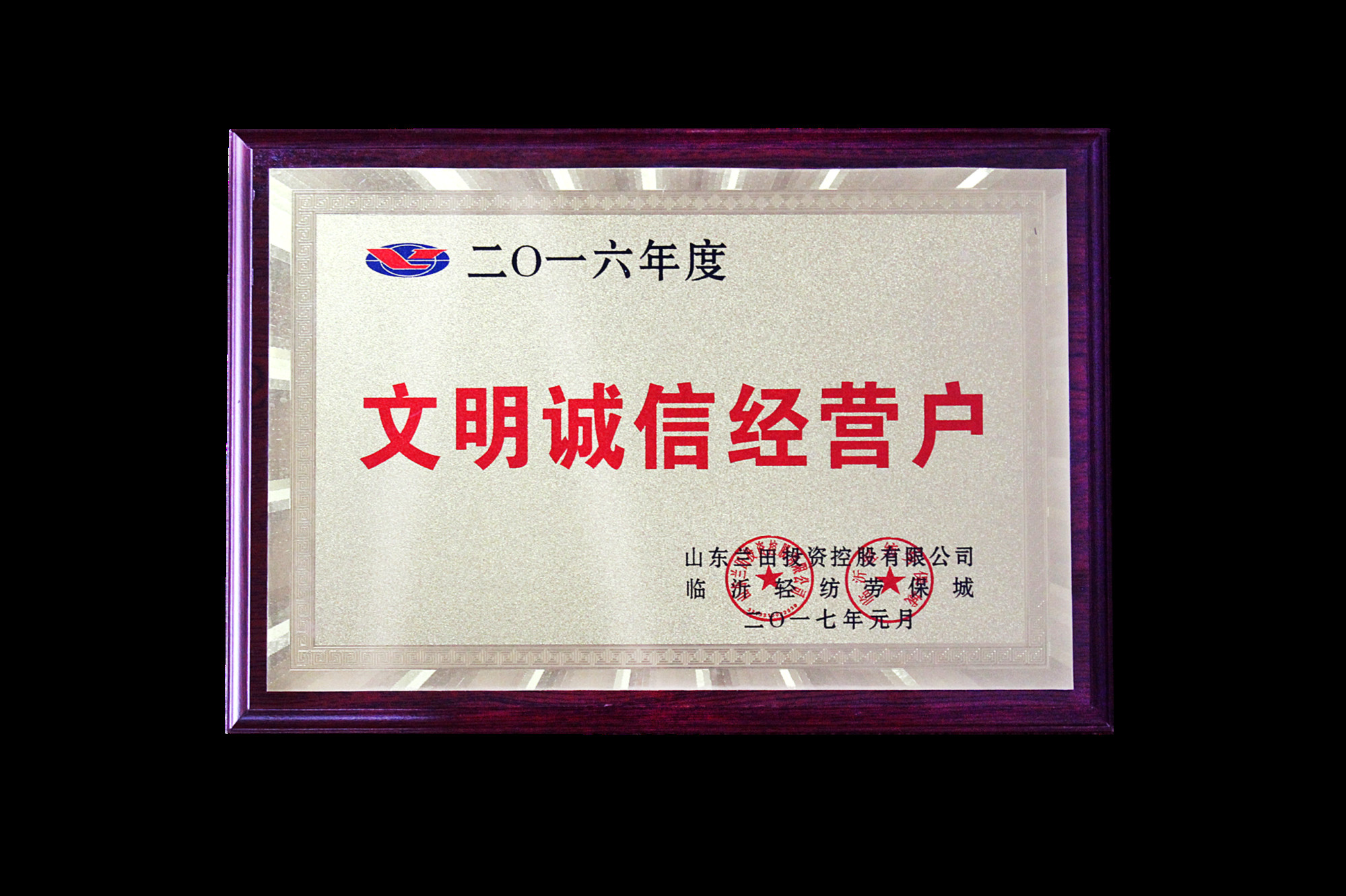 恒安勞保榮獲臨沂商城文明誠信經(jīng)營戶