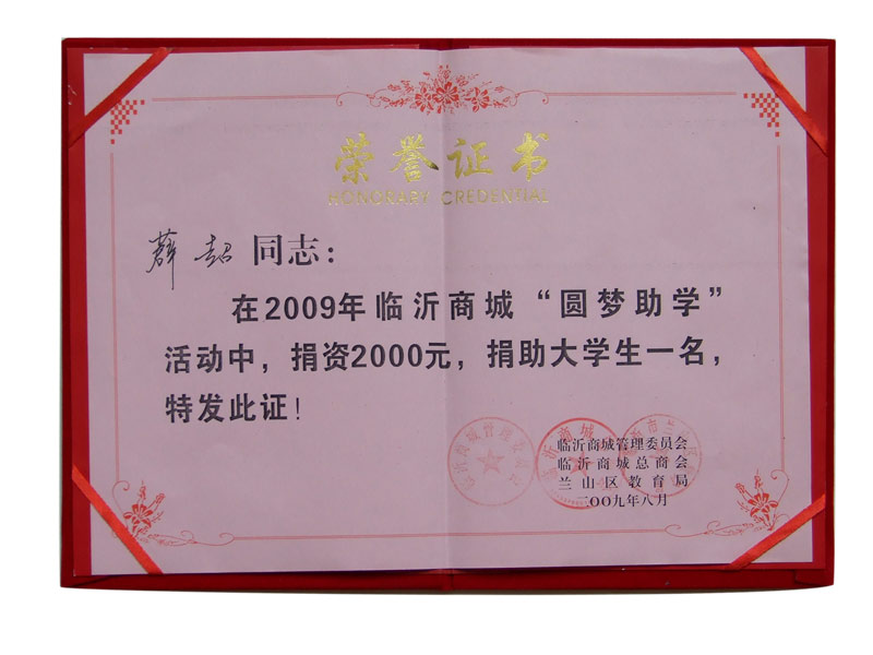 董事長薛超榮獲臨沂商城總商會副秘書長